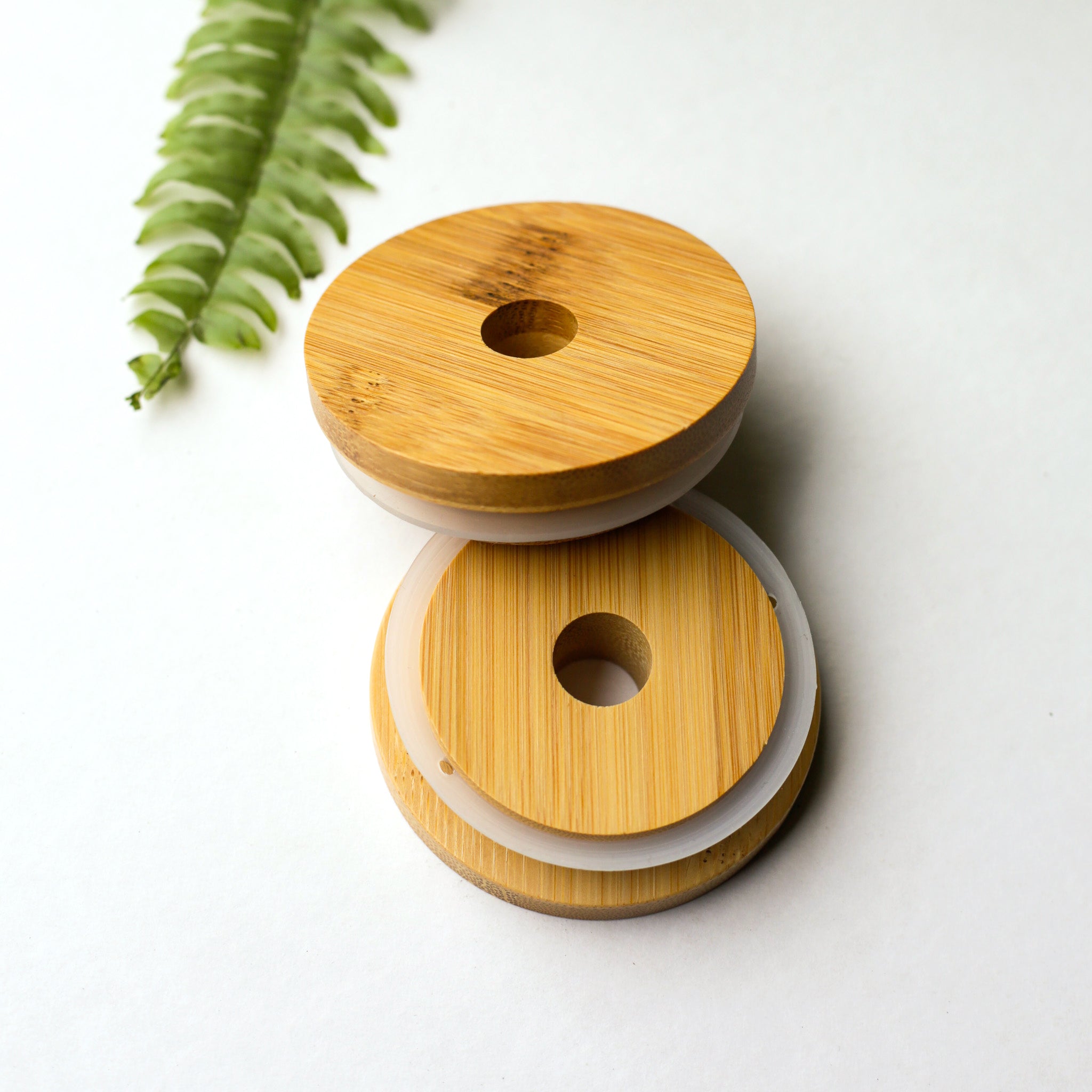 This listing is for one (1) bamboo lid that fits our can glassware and glass straws.